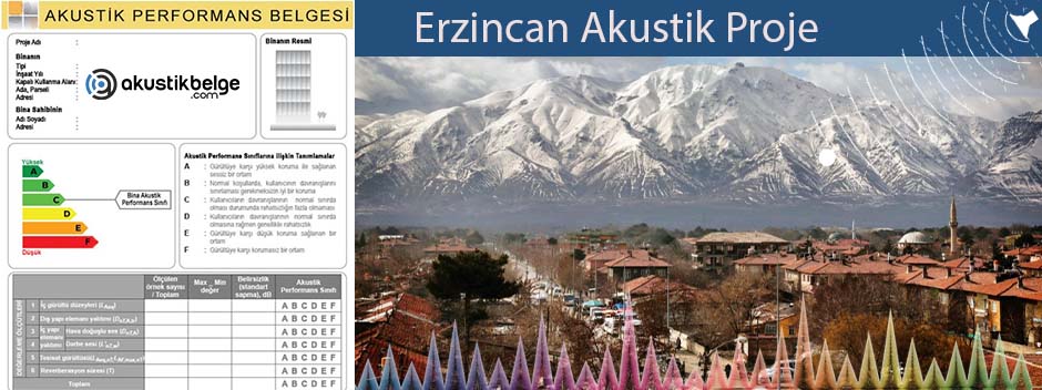 Erzincan akustik proje hizmetleri Erzincan çevresinde var olan gürültü kirliliğinin önlenmesi ve ses denetiminin sağlanması için önem taşıyan çalışmalardır. Gürültü kirliliği günümüz dünyasında çevre kirliliği kadar önem taşıyan faktörlerden biridir. İnsanların yaşam standartlarını düşüren ve rahatsızlık veren bir durum olarak ele alınan gürültü kirliliğinin önlenmesi için T.C. Çevre ve Şehircilik Bakanlığı tarafından inşa edilecek yapılara izin verilmesinin ön koşulu olarak akustik rapor ve akustik proje temini zorunlu kılınmaktadır.