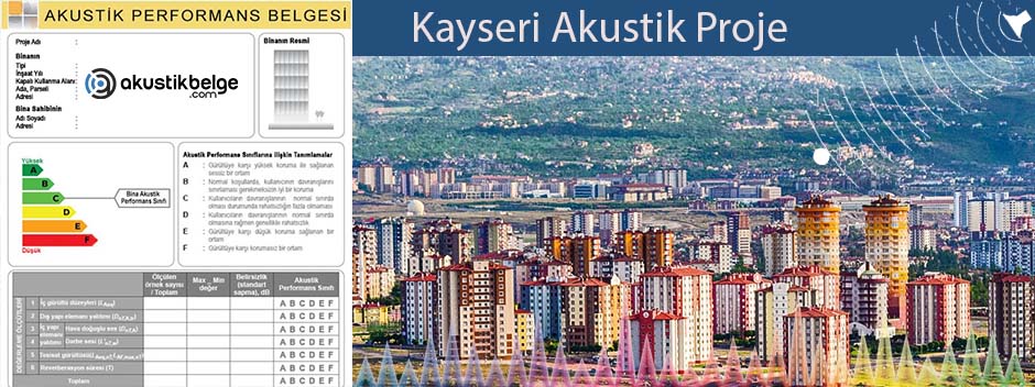 Gürültü kirliğinin neden olduğu gerek fiziksel gerek psikolojik her türlü soruna karşı önlem alınması amacıyla birçok yapı için zorunlu hale getirilen akustik proje ve akustik proje kapsamı dışında kalanlara ise yine yasa gereği zorunlu hale getirilen akustik rapor yapının gürültü ile olan ilişkisini, ses denetimi ve yalıtım düzeylerini açığa çıkaran bir belgedir. Yapının akustiği hakkında bilgi vermesinin yanı sıra dış kaynaklı gürültülerden yapının hangi cephesinin daha çok hangi cephesinin daha az etkilendiği konusunda da bilgi vermektedir. Çevre ve Şehircilik Bakanlığı'nın aldığı karar ile her bina akustik proje yaptırmak zorundadır. Kat sayısı vb. nedenlerden dolayı akustik proje kapsamı dışında kalan binalar akustik rapor hazırlatmak zorundadır. Mimari akustik proje, gürültüyle mücadelede son derece önemli bir tanıdır. Fiyat konusunda akustikbelge.com sitesi üzerinden dilediğiniz gibi hesaplama yapabilirsiniz. Akustik proje fiyatı 1000 TL'den akustik rapor fiyatı 500 TL'den başlamaktadır. Kayseri ilinde yeni bir yapı yapmak istediğinde öncelikle yapıya ait tüm projeleri hazırlamanız gerekmektedir. Artık projelerin yanı sıra Akustik proje yada Akustik Rapor da ilgili belediyenin ruhsat birimine sunulması gerekir.
