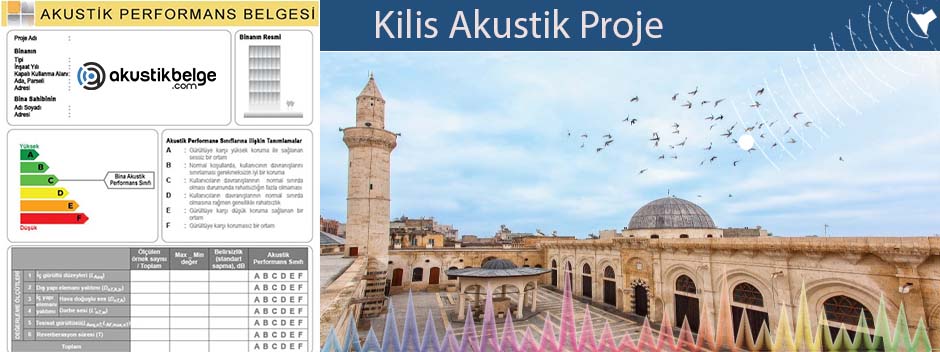 Kilis akustik proje hizmetleri insanların yaşam kalitesini psikolojik yönde etkileyen ses denetimleri ve yalıtım düzeyleri için bina akustik proje temin edebilmektedir. Toplumu gürültü kirliliğinden kurtarmak amacıyla yapılan bu çalışma T.C Çevre ve Şehircilik Bakanlığı tarafından yürütülmektedir. Yeni yapılacak bina, tüm tadilât işleri, yediden az katlı yapılar için rapor gereklidir.